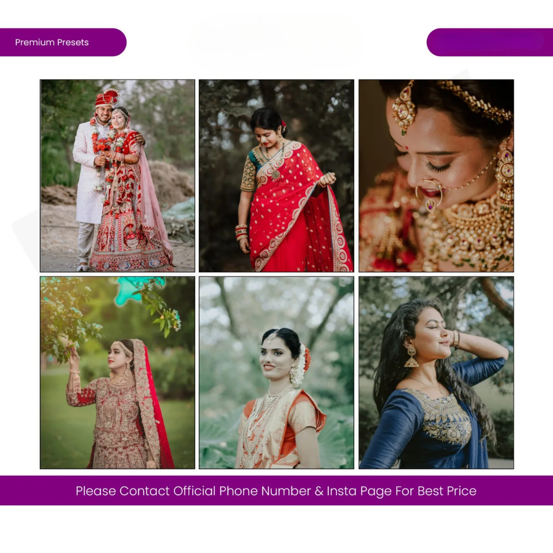 The collection has been curated keeping in mind Indian weddingsrich skin tonescolorful outfits, and complex lighting conditions. You’ll find presets that balance exposure, enhance colors, reduce harsh shadows, and add depth to your photos without over-processing them.